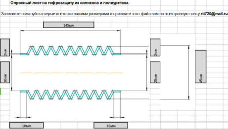 Для заказа гофрозащитных сильфонов можно заполнить и прислать нам на электронную почту опросный лист. Если гофра не стандартная, желательно прислать чертеж, 3d модель или эскиз от руки с основными размерами и количество изделий на которое нужно сделать расчет. В течении 20 минут наши специалисты рассчитают стоимость изготовления и пришлют вам обратно предложение с ценой и сроками изготовления.